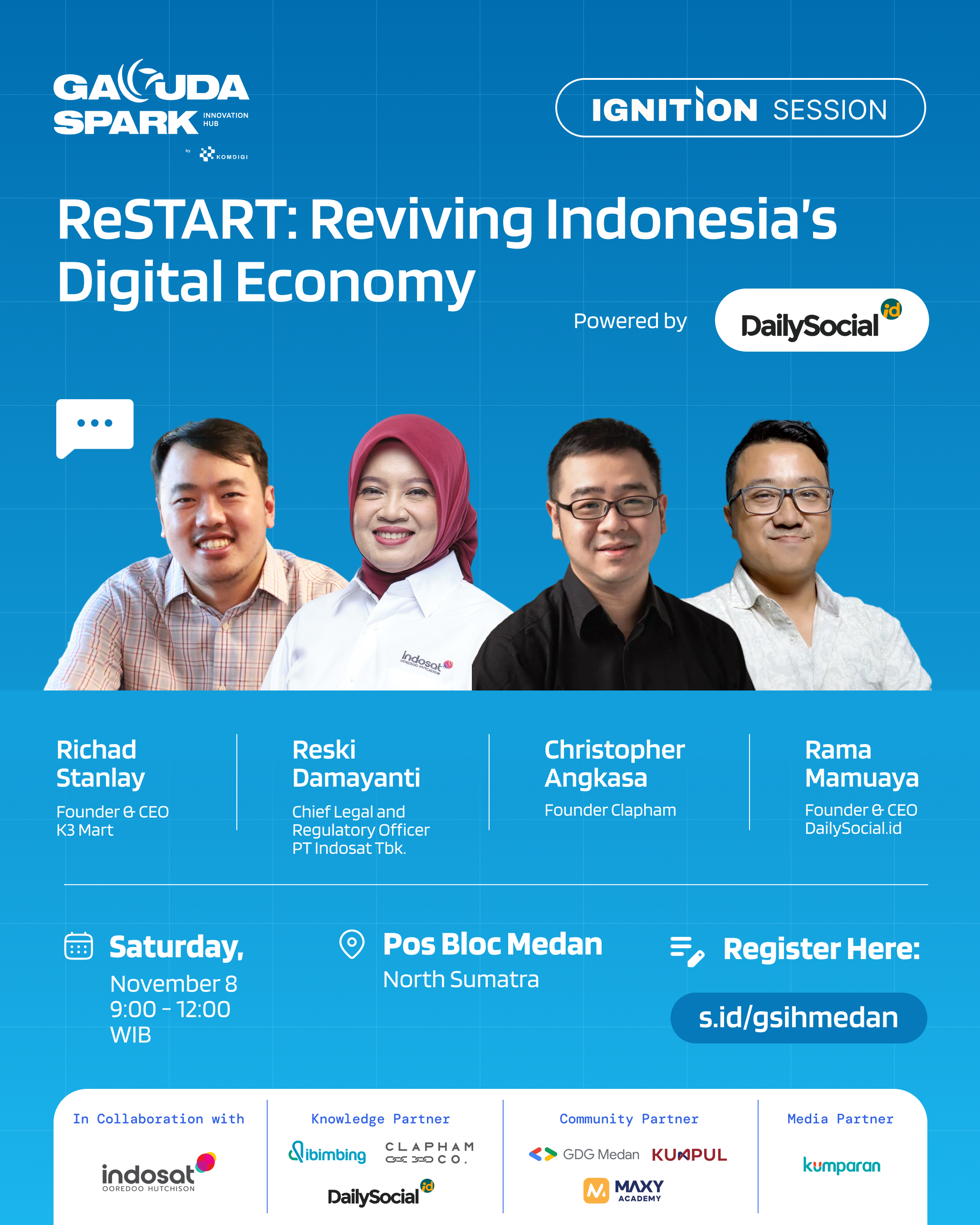 🚀 ReSTART: Reviving Indonesia’s Digital Economy is coming to Medan! Join DailySocial, Komdigi, and Garuda Spark Innovation Hub for an inspiring session on how to rebuild a stronger, ethical, and impact-driven startup ecosystem for Indonesia’s digital future. 🔗 Register now at s.id/gsihmedanBest regards,