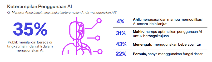 According to Kumparan’s Report, AI has achieved significant penetration in Indonesia, with 97 percent of the public aware that their daily digital services are powered by AI. Generative AI chatbots lead adoption, with ChatGPT commanding 85 percent of users, followed by Meta AI at 72 percent and Google Gemini at 65 percent. Within six months, 80 percent utilized AI for information retrieval, demonstrating that AI has become the default tool for accessing knowledge.