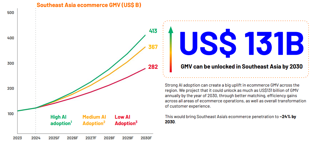 A new joint report from Lazada and Momentum Works projects that widespread adoption of generative AI could add US$131 billion in GMV to Southeast Asia’s e-commerce sector by 2030. Despite 91% of consumers expressing trust in AI-assisted shopping, 61% of businesses remain skeptical. Case studies on Lazzie, LISA, and Smart Listing show AI's impact on conversion and efficiency. The report introduces the POP-Leadership framework to guide AI-native transformation.